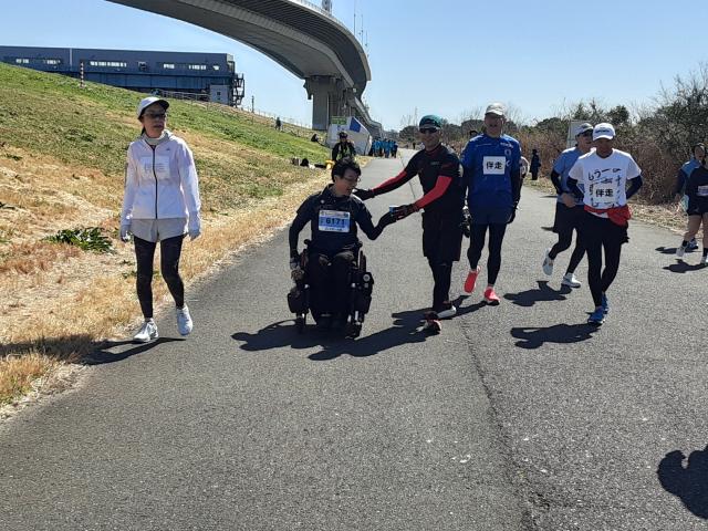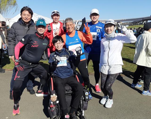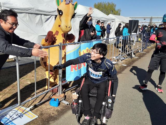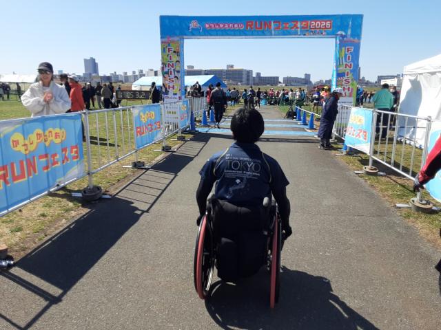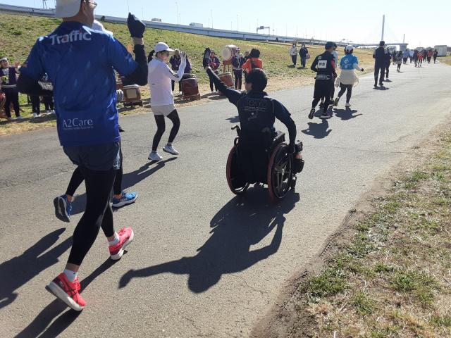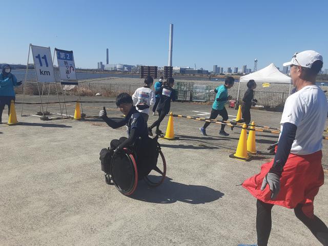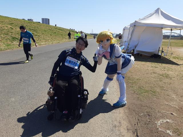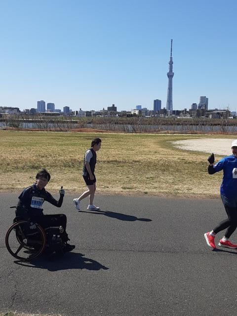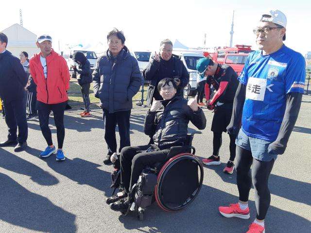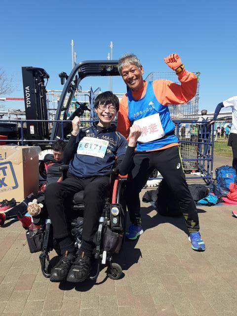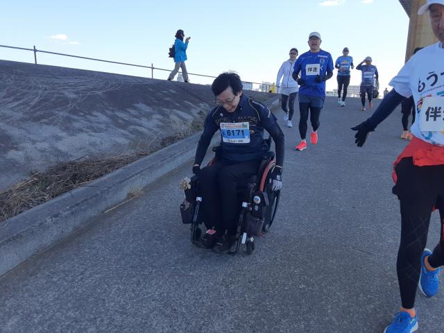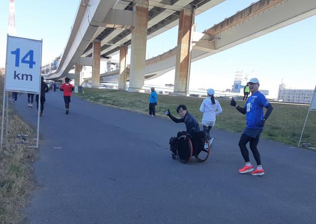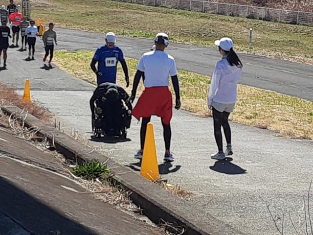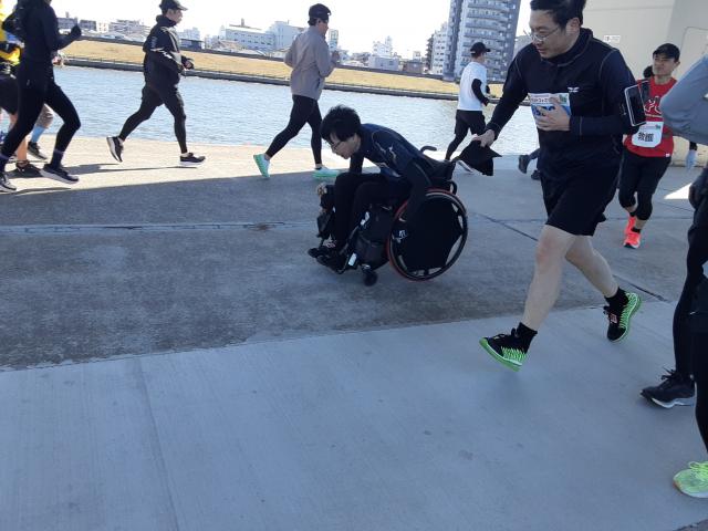 普通の車イスランナー・下山さんの伴走です。