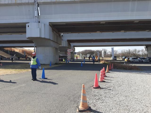 最後の最後、土手から河川敷に下りると風がまし。ちょっとだけ残っていた力を出し切ってゴール。