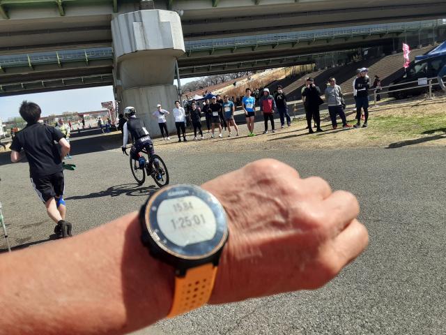 2年前は「新横浜鶴見川マラソン」のハーフに出場し、1時間49分23秒。