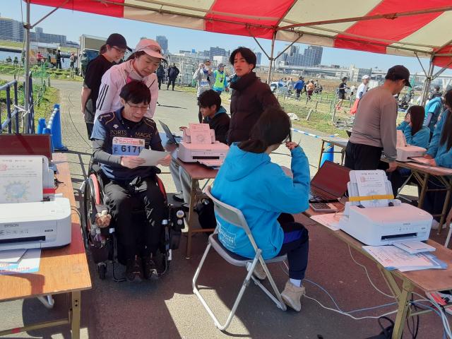 日曜に「かつしかハーフ」で、普通の車イスランナー・下山さんの伴走をする。