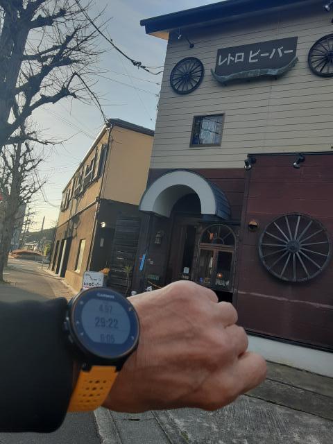 喫茶「レトロビーバー」のちょっと先で5km、29分39渺。