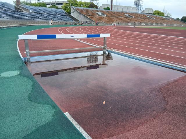 グランドが水たまりになるくらいの大雨。