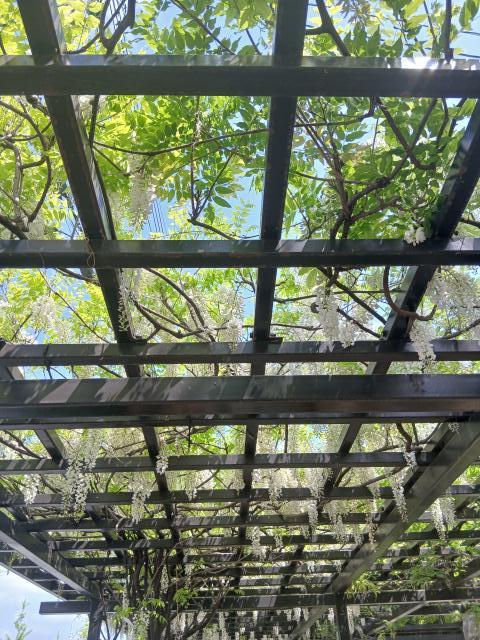 よーく見てみると、うす紫の藤が終わり白い藤が咲いていた。