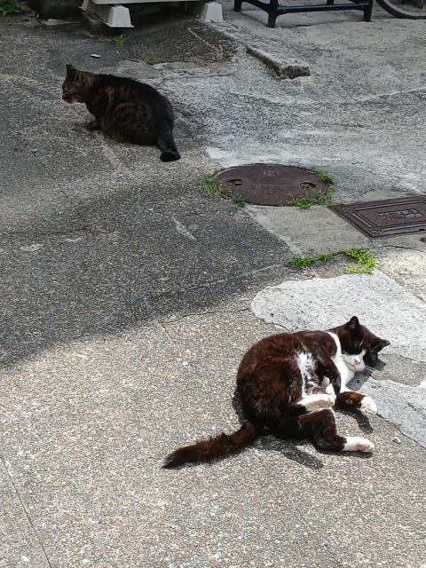 いつもの路地奥に行くと、しらたまときっちゅがごんごろりん。