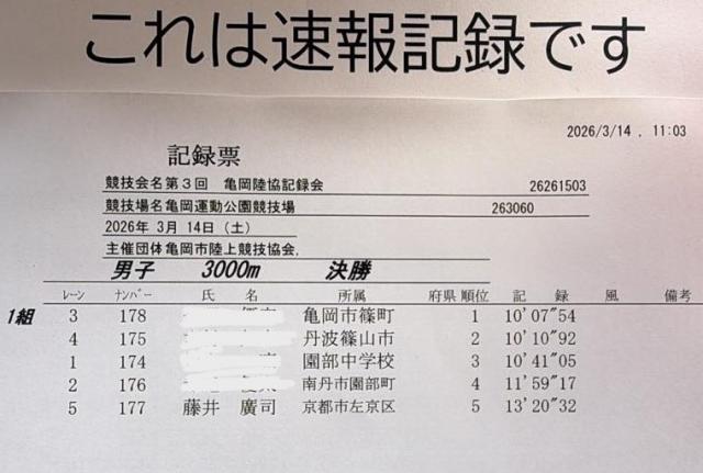 「記録は亀岡市陸協のfacebookで発表」とのことだったので、そのまま帰ることにした。