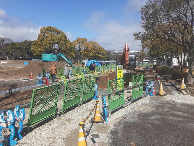 亀岡運動公園は、大規模改修中。重機が動いているすぐ横を通るのはかなり抵抗があった。