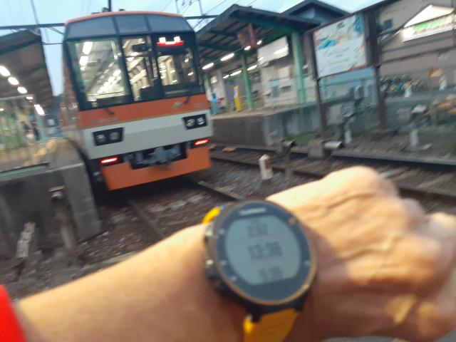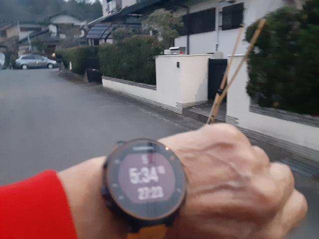帰り4kmは、5:29 5:30 5:44 5:22 で22:05。
