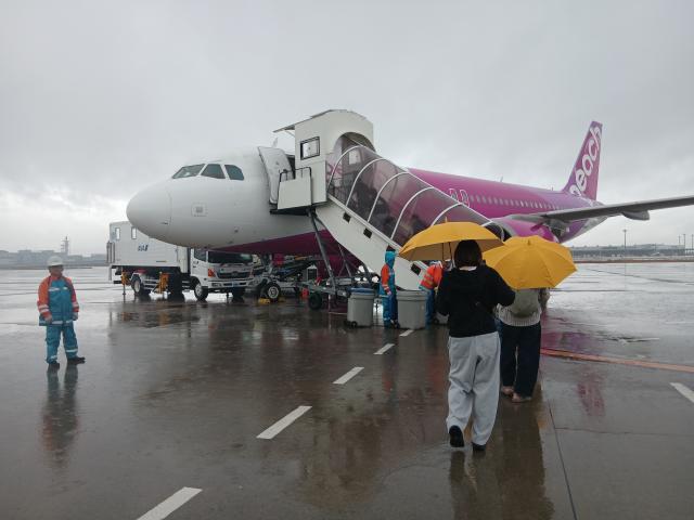 朝からずっと雨だったが、あまり濡れることもなく飛行機に乗れた。