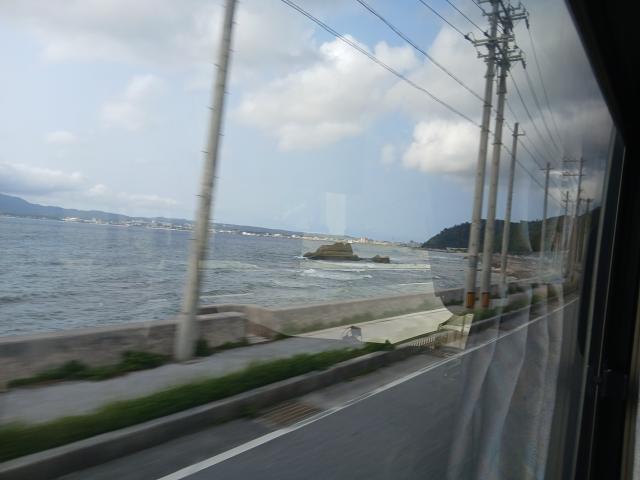那覇空港12時30分発のやんばる急行バスに乗って名護に行く予定だった。でも飛行機が50分ほど遅れたので、次の14時10分に乗ることにした。