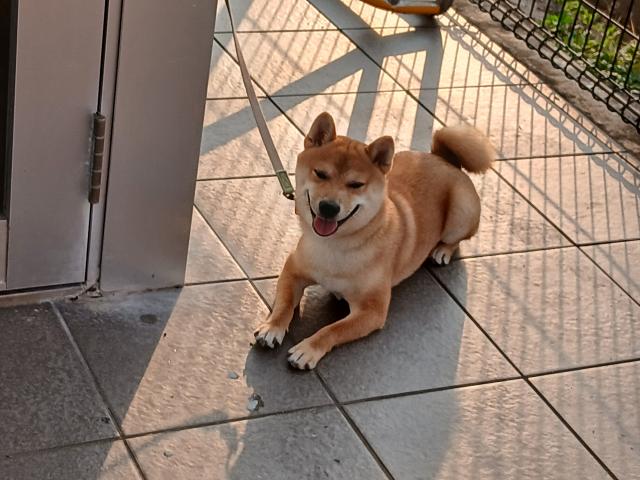 玄関を出ると、ご近所犬ぽんちゃんに遭遇。