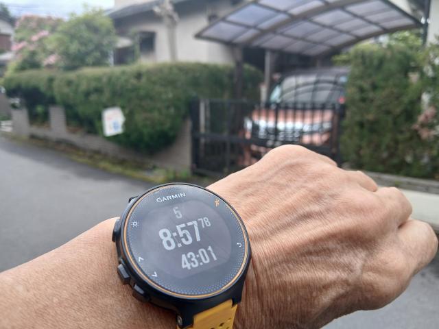 自宅到着、ちょうど5km。43分もかかった。ウルトラ完走ペースより遅かった。