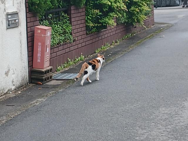 家を出ると、いきなり若ミケちゃんが通過。